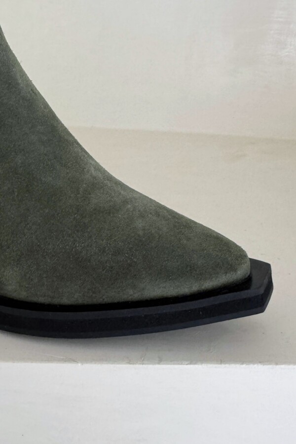 Bota tipo tejana de caña corta.Confeccionada en cuero nobuk.